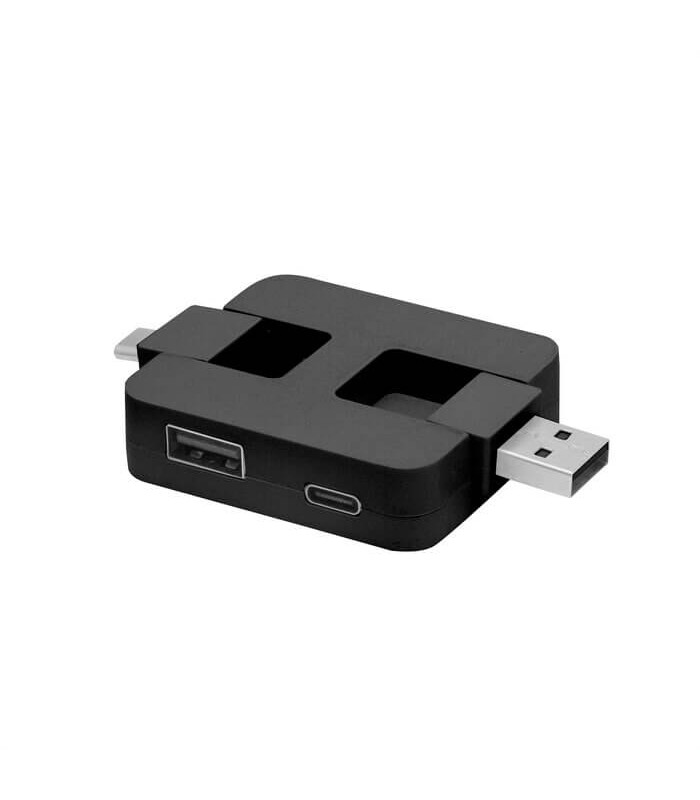 HUBERT es un adaptador HUB multipuerto ultra compacto, diseñado para ofrecer una conectividad total en un formato minimalista y altamente portable. Este dispositivo destaca por su versatilidad híbrida, contando con una entrada dual USB-A y USB-C que lo hace compatible con laptops de última generación, tablets y computadores de escritorio. Su arquitectura técnica permite expandir un solo puerto en cuatro salidas adicionales (2 x USB-A y 2 x USB-C) mediante conectores rebatibles que optimizan el espacio y protegen las terminaciones. Este accesorio tecnológico corporativo es la solución definitiva para la gestión de periféricos en entornos de teletrabajo o movilidad, posicionándose como un regalo empresarial innovador de alta utilidad cotidiana.