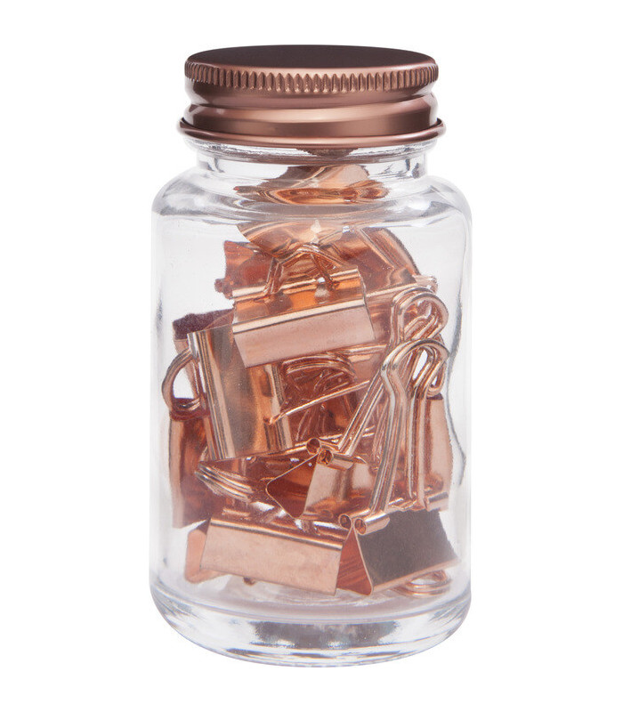 Set de Sujetapapeles Metálicos en Frasco de Vidrio
