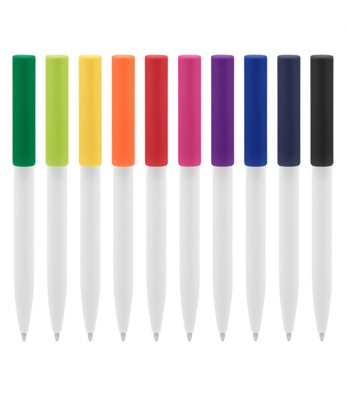 Este bolígrafo retráctil es una excelente opción para regalos publicitarios y productos de merchandising. Con un cuerpo blanco y clip de diferentes colores, este bolígrafo es ideal para resaltar tu marca. El sistema de botón push facilita su uso, mientras que la tinta negra garantiza una escritura suave y fluida. Su amplia área de impresión te permite personalizarlo con tu logo o mensaje de manera efectiva.