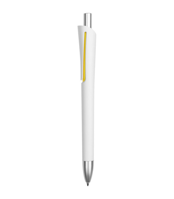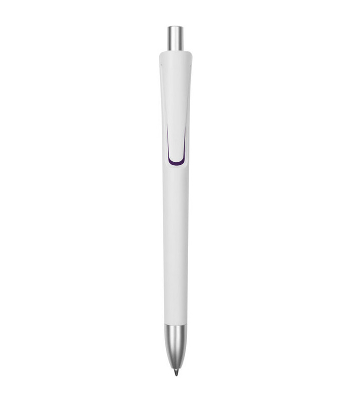 Este bolígrafo retráctil es una opción excelente para regalos publicitarios. Con un cuerpo blanco mate y detalles en color plata en el clip, punta y pulsador, este bolígrafo combina diseño y funcionalidad. La tinta azul proporciona una experiencia de escritura suave y duradera, lo que lo convierte en una herramienta ideal para uso diario o como parte de tu estrategia de merchandising.