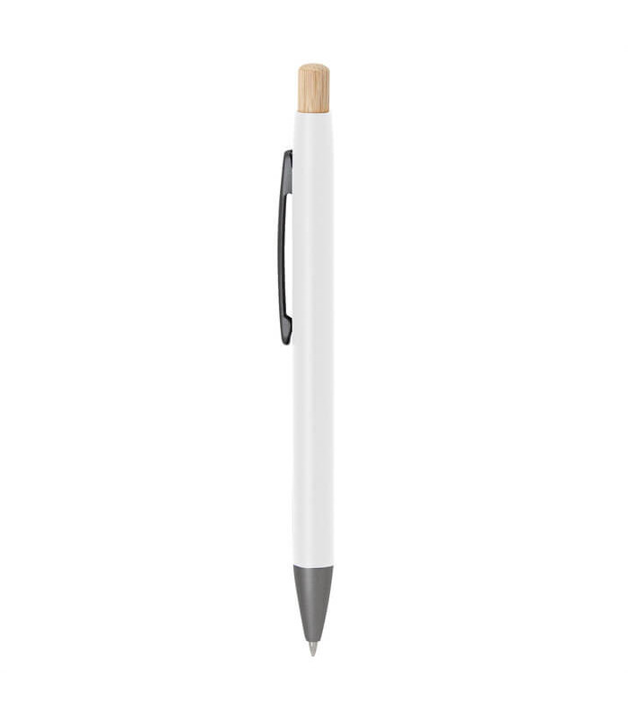 El bolígrafo MIK es una pieza de escritura que fusiona minimalismo industrial con calidez orgánica. Diseñado bajo un concepto de escritura con diseño y estilo, este modelo retráctil destaca por su cuerpo metálico de aluminio con un sofisticado acabado mate en diversos colores. Su estructura se complementa con un clip metálico de alta resistencia, una puntera plástica en color gris y un pulsador de bambú natural, lo que le otorga una identidad única dentro de la categoría de bolígrafos corporativos premium.
