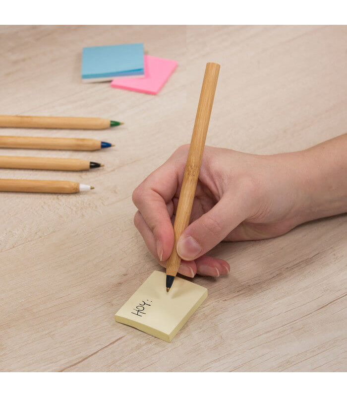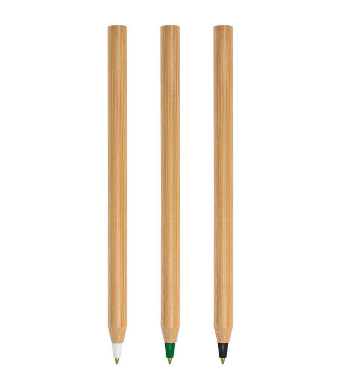 Bolígrafo con cuerpo de bambú y punta plástica de diferentes colores. Tinta Negra.