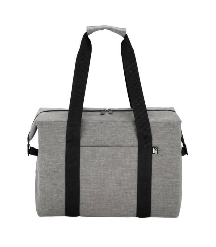 Fabricado en poliéster 300D recubierto de RPET, este bolso es una elección responsable dentro de cualquier estrategia de merchandising sostenible para empresas. Su diseño moderno en tonos gris y negro lo hace versátil y elegante, adecuado tanto para entornos urbanos como para contextos outdoor.