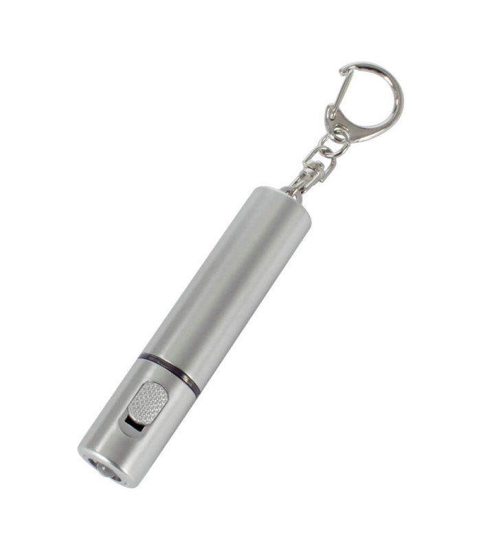 Este práctico llavero-linterna LED es la combinación perfecta de funcionalidad y portabilidad. Fabricado en plástico ABS color plata, es un accesorio ligero diseñado para ofrecer una fuente de luz confiable en cualquier momento, ideal para llevar junto a las llaves del auto o el hogar.