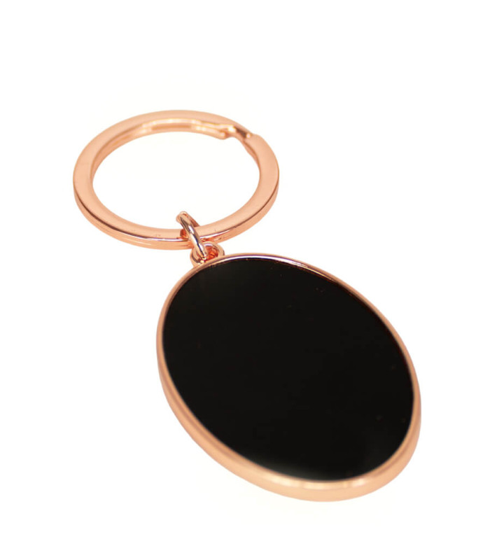 Este llavero metálico ovalado es una pieza de distinción fabricada en zinc alloy encobrizado de alta densidad. Su diseño se caracteriza por una forma orgánica y suavizada que enmarca una placa interior de aluminio negro, ofreciendo un contraste cromático moderno y elegante. Presentado en un estuche laminado negro mate con cuna aterciopelada, este accesorio se consolida como un regalo corporativo premium de gran impacto visual, ideal para marcas que buscan transmitir valores de exclusividad, solidez y atención al detalle en sus obsequios institucionales.