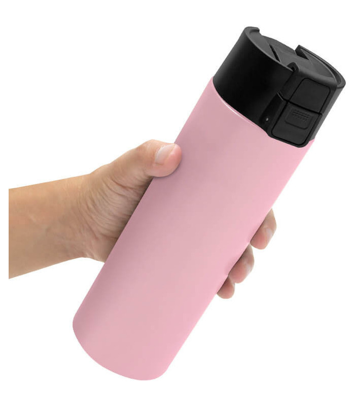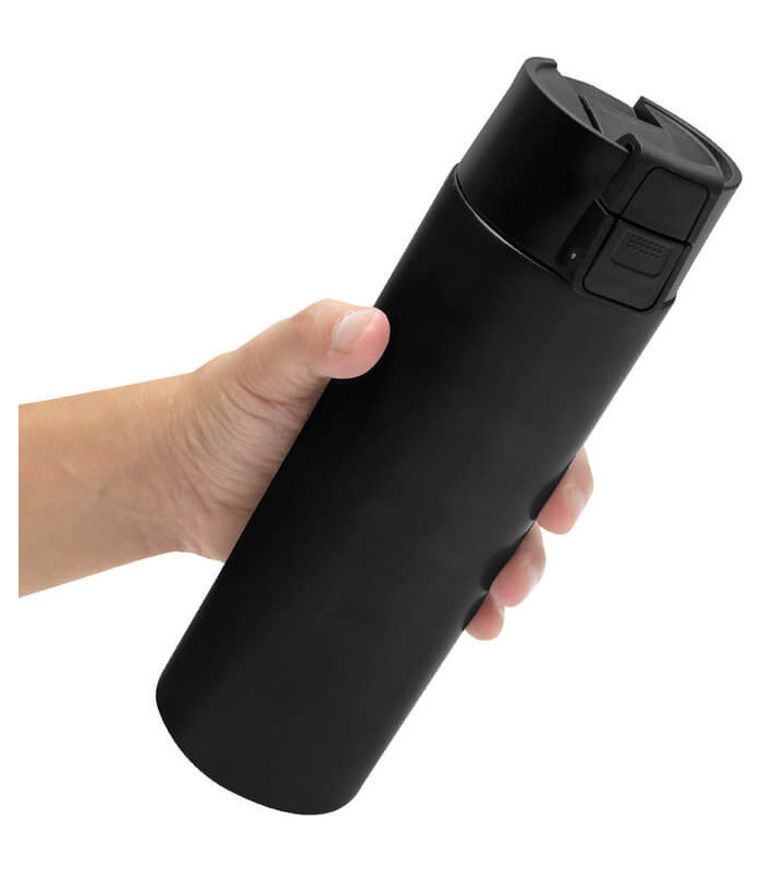 La botella térmica de acero inoxidable Ally de 450 ml es ideal para regalos corporativos funcionales y promociones de marca. Su diseño con doble pared sellada al vacío permite mantener bebidas calientes por más de 12 horas y frías por hasta 24 horas. Su interior de acero inoxidable 304 y exterior de acero 201 la hacen resistente y duradera, mientras que el acabado mate ofrece una estética moderna. Incluye una tapa de PP con traba de seguridad y botón pulsador, perfecta para el uso diario.