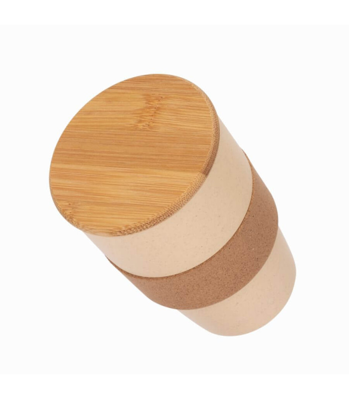 ISLAY es un vaso reutilizable de 375 ml que fusiona naturaleza y funcionalidad. Fabricado en fibra de trigo con tapa de bambú y grip de corcho natural, su diseño ergonómico y cálido lo convierte en un aliado perfecto para bebidas calientes, tanto en casa como en movimiento. Más allá de su estética minimalista, ISLAY representa una declaración sobre el uso consciente de materiales renovables y reciclables. Personaliza este vaso con tu marca y acompaña cada sorbo con un mensaje claro: elegir bien también se ve y se siente bien. Información adicional