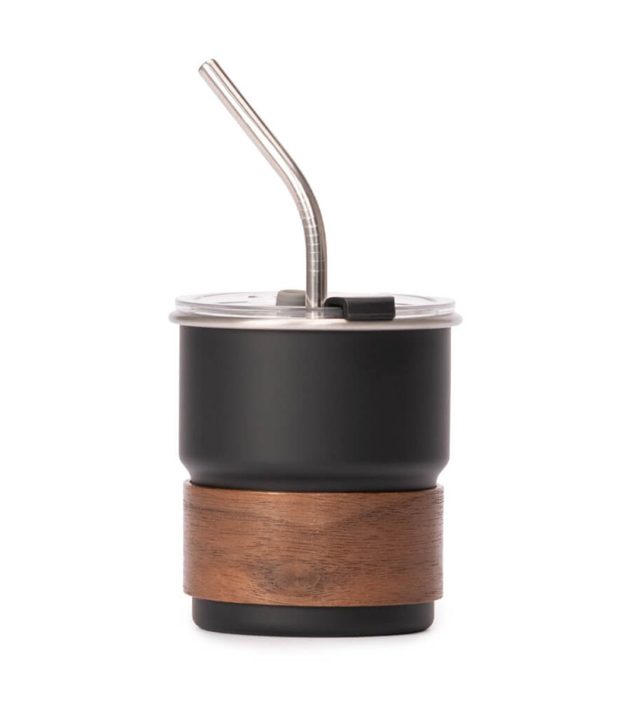 Incluye bombilla de acero inoxidable y un grip aislante de madera, lo que lo convierte en una alternativa funcional y diferenciadora como regalo corporativo, merchandising premium o artículo promocional de alto uso. Sus múltiples técnicas de personalización permiten destacar la identidad de marca con acabados duraderos y profesionales.