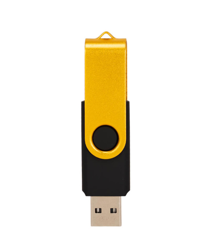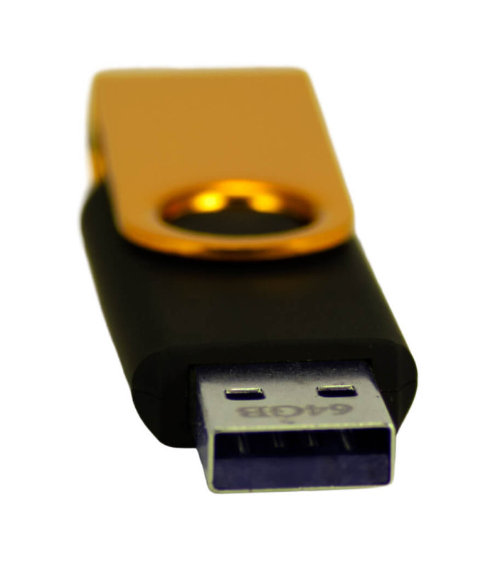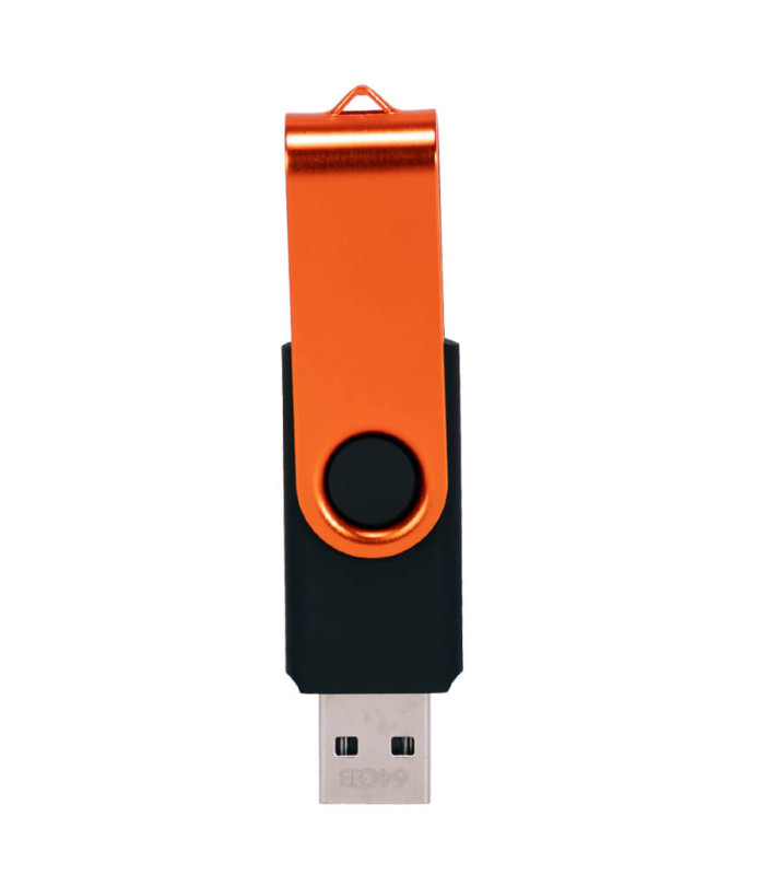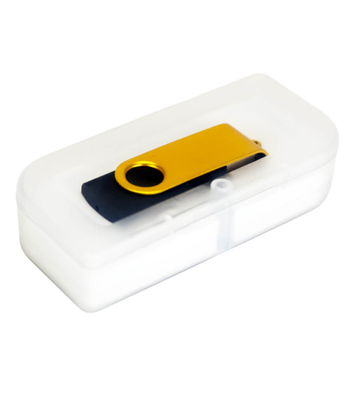 El USB Pendrive 2.0 de 64GB es una solución de almacenamiento masivo que combina robustez y un diseño clásico funcional. Su estructura destaca por una carcasa metálica de giro que protege el conector sin necesidad de tapa, evitando pérdidas y facilitando su uso diario. Este dispositivo de almacenamiento digital corporativo ofrece una capacidad superior para gestionar documentos, presentaciones y archivos multimedia con total seguridad, presentándose en un elegante estuche de PVC translúcido que realza su valor como artículo de regalo o merchandising premium.