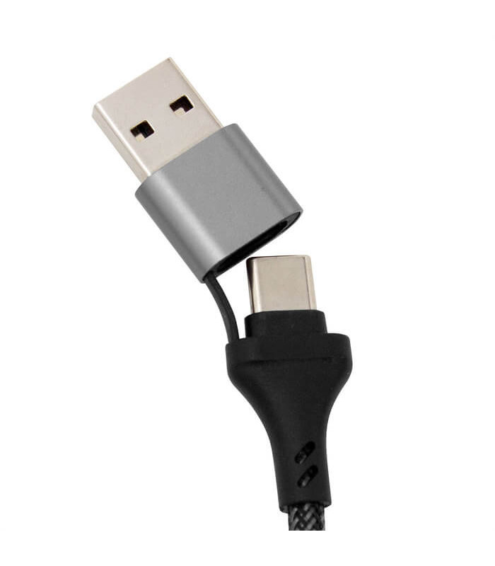 Este cable ofrece una entrada 2 en 1 (USB y USB-C), lo que lo convierte en una herramienta versátil para diferentes dispositivos. Su salida USB-C, microUSB y lightning permite conectar una gran variedad de dispositivos, lo que lo convierte en un accesorio indispensable para clientes y empleados.