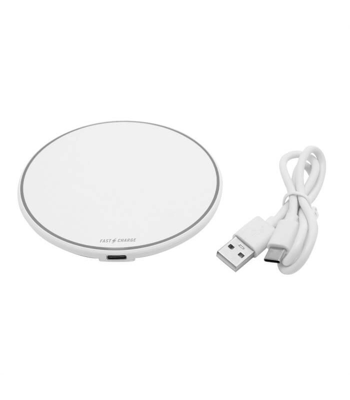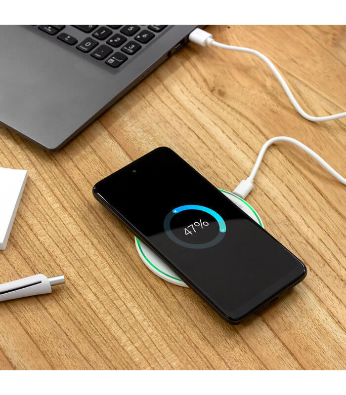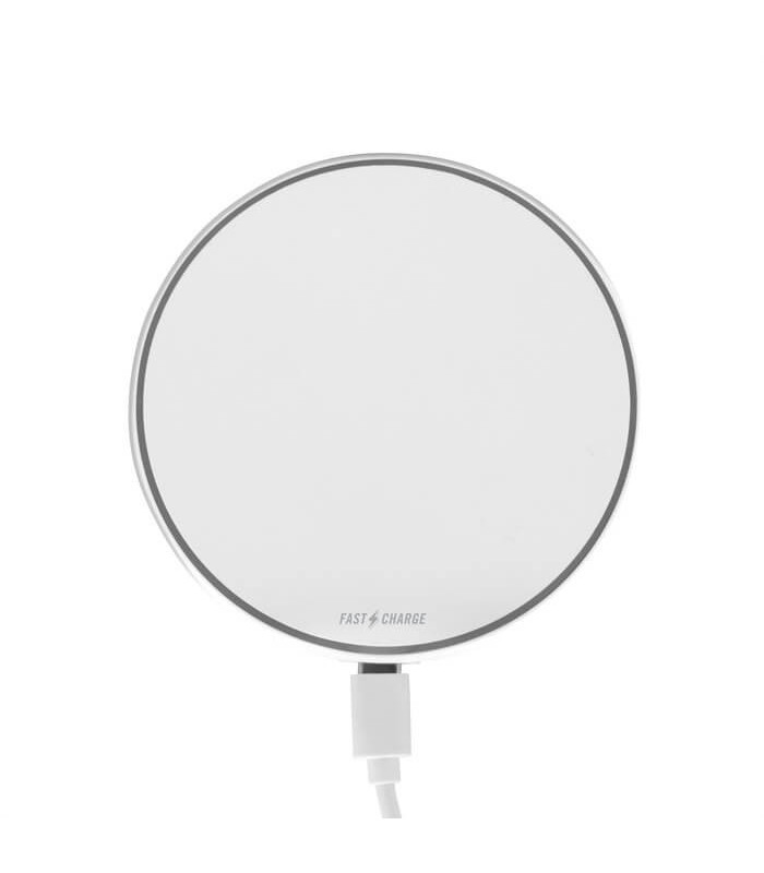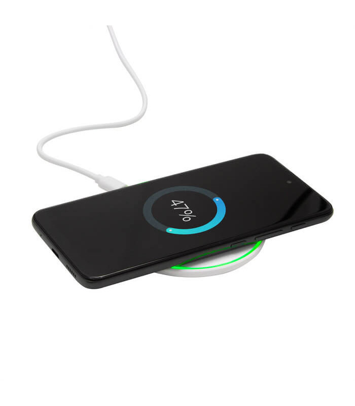 El Cargador inalámbrico DISCO es ideal para quienes buscan comodidad y eficiencia. Con una salida de 15 watts y carga rápida, este cargador permite mantener tus dispositivos siempre listos para usar. Su diseño moderno incluye una base de plástico ABS de color blanco con antideslizantes para mayor estabilidad y seguridad. Además, cuenta con luces indicadoras de carga para que puedas ver el estado de tu dispositivo en todo momento.