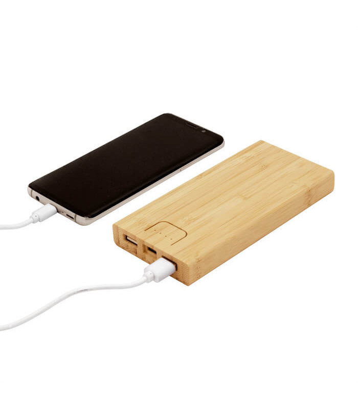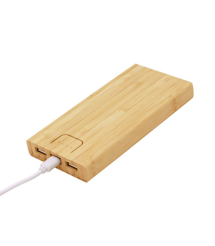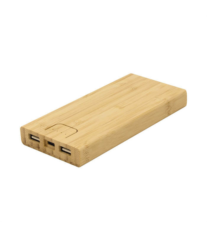 El Power Bank “BAMBPOWER 2” es una batería portátil ecológica diseñada en bambú natural, que combina tecnología, diseño y sostenibilidad en un solo producto. Su acabado orgánico y su alta capacidad de 10000 mAh lo convierten en el aliado perfecto para mantener tus dispositivos cargados en todo momento con estilo y responsabilidad ambiental.