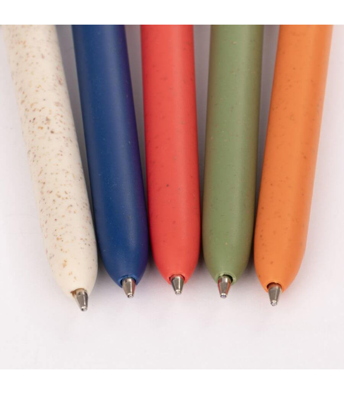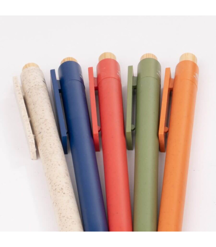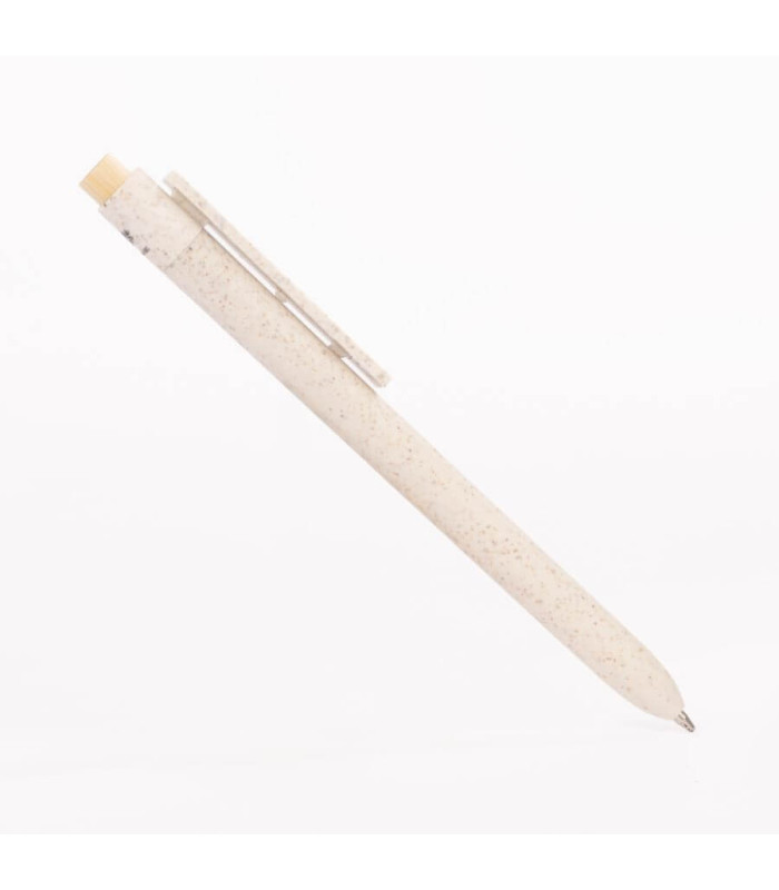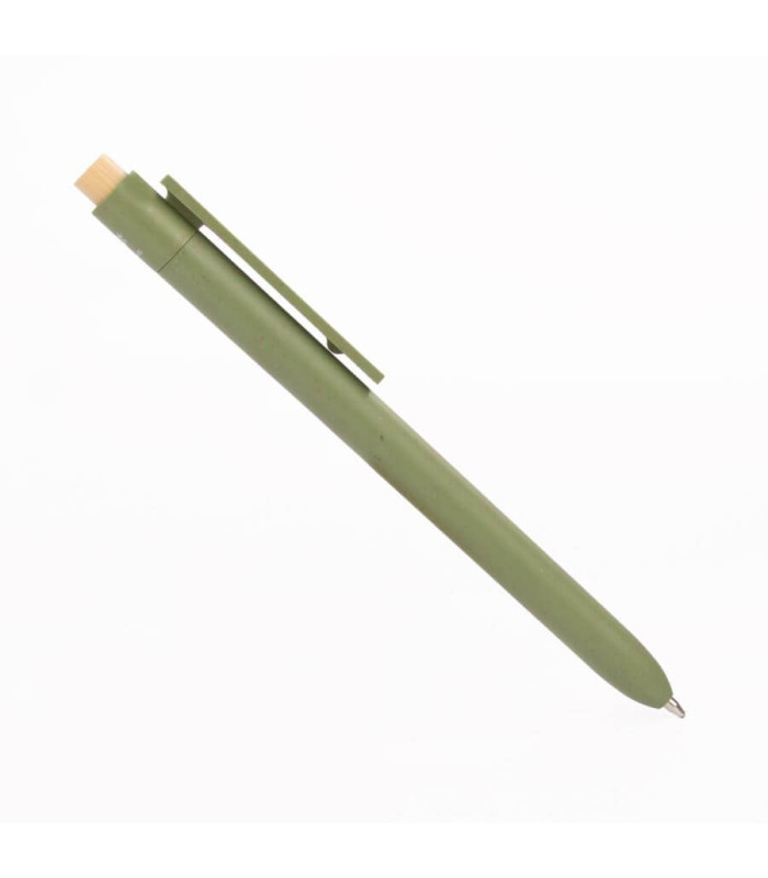 BOMBAY es un bolígrafo de fibra de trigo y bambú de la marca The Green Life, diseñado para equilibrar la funcionalidad diaria con el respeto al medio ambiente. Su cuerpo y clip están elaborados con fibras naturales de trigo, lo que reduce significativamente el uso de plásticos convencionales, mientras que su pulsador de bambú aporta un acabado orgánico y sofisticado. Es importante notar que, debido a su origen natural, los tonos pueden presentar variaciones únicas respecto a las tablas de referencia, otorgando a cada pieza un carácter exclusivo.