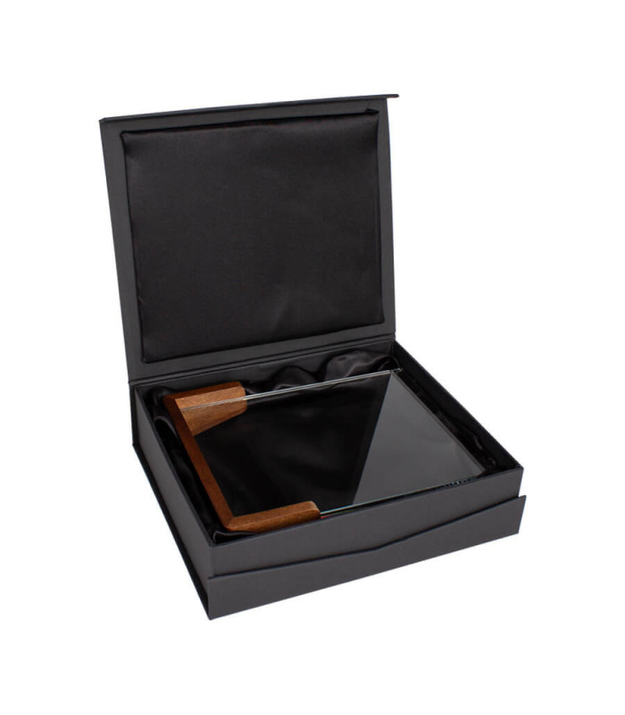 Su presentación premium con caja imantada e interior de espuma troquelada y tela satinada negra convierte cada entrega en una experiencia inolvidable. Es la opción perfecta para reconocimientos empresariales de trayectoria, premios institucionales o celebraciones corporativas que requieren un detalle distintivo y elegante.